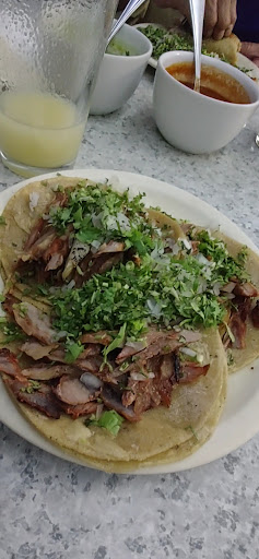Aunque no es un lugar precisamente barato, tienen los mejores tacos al pastor en muchos kilómetros a la redonda, lo cual seguramente se debe a que se cuecen con carbón y no con gas, lo cual les da un sabor especial, al igual que su legendaria salsa roja. Las tortillas las remojan en manteca y luego las calientan, así que debes estar dispuesto a ingerir algo de grasa, a menos que pidas totillas calentadas al vapor de los tacos de caneza. Recomiendo que pidas los tacos al pastor bien cocidos, porque cuando hay mucha gente te los sirven un poco crudos.