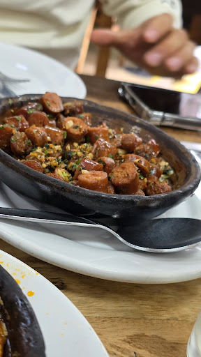 Read moreEste lugar me gustó mucho. y me gustó, debido a la sorpresa que me llevé al probar el chorizo sidra, el cual me dijeron que era uno de los tantos platillo emblemáticos, y sí, es una entrada que definitivamente no decepciona, no falla, está garantizado. creo que la forma de la preparación intensifica y resalta el sabor del chorizo, ya que extrae todos sus jugos, todos sus caldos al momento de la cocción. también probé su queso sella, mezcla de quesos, de sabor intenso, fuerte, que deja ese sabor en la boca el queso azul, rico. Lo que también se me hizo una exquisitez, fue el chamorro, Buenísimo, lo sirven con sus jugos, nada reseco muy bien cocido, se desprende sóla la carne de los huesos, no creo estar descubriendo el hilo negro, pero si confirmo la calidad de su cocina. Lo malo del lugar según yo, la salsa nada que ver su sabor para acompañar el chamorro, quedo atrás ya que la que estaba en mi servicio inicial, estaba a 5 minutos de echarse a perder, osea que no es del día, es preparada con mucha anticipación, la refrigeran y no la confirman. otra cosa, te amontonan todos los platos y no te dan tiempo de disfrutarlos a su tiempo, y todo se enfría rápido. Entonces o disfrutas del queso, o te apresuras a comer aún caliente el chorizo o les das prioridad al chamorro para que no se enfríen las tortillas, me explico? mejorando eso, esta garantizado al 100. El café también muy...