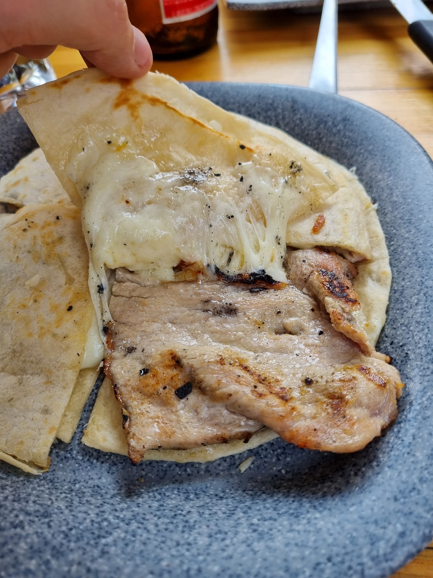Al ser los únicos nos atendieron muy rápido, me recomendó el mesero el platillo del mes que eran unos tacos de pastor con frijoles y queso los cuales estaban bastante buenos. Luego pedí una chuleta que sinceramente no se que tenia de especial excepto que traía queso y tortilla de harina. Termine con una orden de tacos new york qué igual no estaban nada del otro mundo.