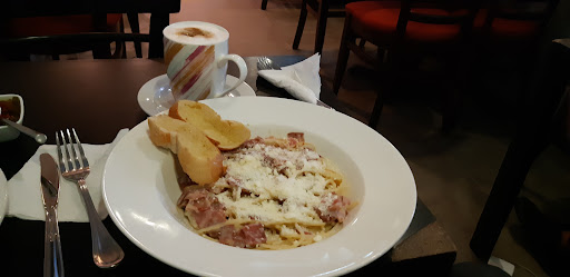 Read moreTiene el espacio justo y necesario para sentirse cómodo, cuenta con un menú variado, la comida está muy bien servida y preparada. En nuestra visita probamos una chapata de jamón y queso gouda y aguacate, muy rica y además servida con ensalada sencilla, un espagueti Alfredo con tocino y jamón Serrano muy bien preparado, la salsa Alfredo muy rica también, un chocolate caliente espeso no muy dulce y delicioso y un capuchino también muy bien preparado. El consumo promedio sería...
