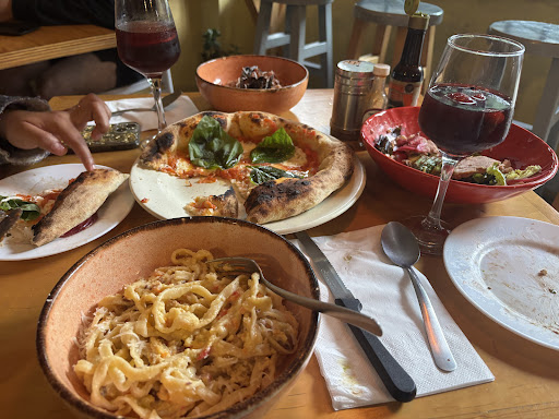 Fui por recomendación pero, o me hicieron una broma o de plano no corrí con “suerte”. Comienzo con el servicio: Los chicos son muy amables, lamentablemente no tienen la información suficiente de lo que preparan ni de los ingredientes que lleva y no recogen los platos y vasos en tiempo. Las mesas son pequeñas y pronto te quedas sin espacio. La comida: (dios mío), muy poca variedad que, aunque bien servido, el sabor deja bastante que desear. Pedí croquetas de risotto con pomodoro y el pomodoro estaba extremadamente ácido. Al momento de pedir la pizza, de igual manera la salsa estaba súper ácida, muy poco queso y parece que contaron los ingredientes (en mi caso fueron hongos y prosciutto). Lo único rescatable era la masa, muy ligera y bien preparada, pero con la acidez de la salsa resultaba incomible. El ambiente: ¿que puedo decir? Lo hacen tu y tu compañía, sin embargo no es nada del otro mundo. Precio: Alto si lo comparamos con la calidad que recibes de los alimentos. Aunque debo admitir que el costo de las bebidas es extremadamente accesible a comparación de otros restaurantes. Muy buen concepto, en verdad, y el lugar luce muy limpio y decente, es pequeño y no te encontrarás con música estruendosa ni nada por el estilo. Es como un lugar de paso, no es como para una cita romántica ni nada por el estilo. Lamentablemente la experiencia que tuve con la comida (que al final es lo que importa) me deja con muy pocas ganas de regresar.