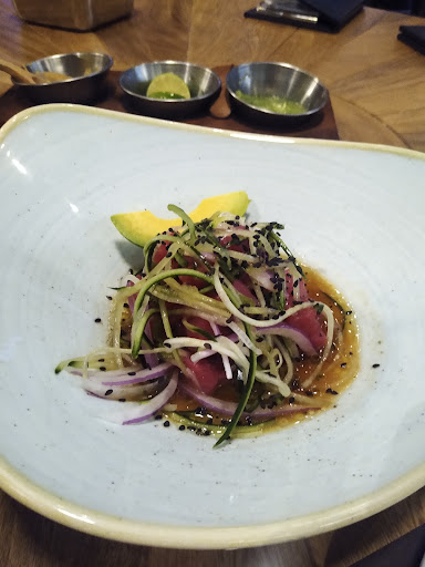 Primero pedimos unos camarones a la diabla y les falta sabor y sazón supuestamente es un platillo con picante y no sabía a nada, regresamos el platillo y pedimos unos camarones al grill (los cuales estaban en 580 pesos) y estaban muy sencillos para el costo del platillo pedimos como acompañante verduras al grill y nos trajeron arroz al vapor. Pedimos unos tallarines con camarones y verduras salteadas (champiñones, pimientos y brocoli) dado que seria un platillo que iba a comer una persona que no consume picante se solicitó que trajeran el platillo sin la salsa picante cuando trajeron el platillo fue espantoso...los tallarines masudos y chiclosos muy lejanos de ser tallarines, las únicas verduras fueron brocolis y en lugar de poner soya sin picante los dejaron sin nada...