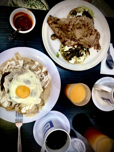 La sazón es mala, la salsa verde para los chilaquiles que seguramente es la misma que ocupan para enchiladas y otros platillos, estaba muy ácida, con un sabor de sobrecocido; el pollo que acompañaba los chilaquilesmuy duro y en trozos grandes. El café suave y con un toque de canela, el jugo de frutas que ofrecen tenia buen sabor, aunque la porción es pequeña, la pieza de pan sin ninguna peculiaridad.