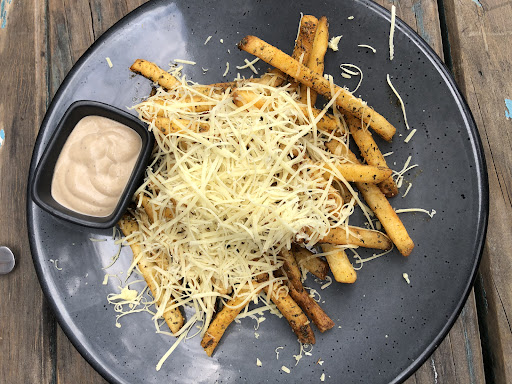 Now for the FOOD! The truffle fries, baby!! Damn! I will absolutely be coming back for those fries! The Turkish burger!?! Man, what??? That was FIRE! I thought it was real meat. Its made with Beyond meat and it was juicy, seasoned and had hella flavor! Thank you for that! I will be coming back for that too!
