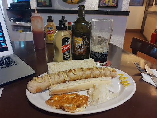 Read moreUn muy buen lugar para ir por unas cervezas y comer unas ricas salchichas estilo europeo. Si tienes ganas de algo con buen sabor y más tradicional, recomiendo la salchicha polaca con muy buena textura y consistencia. Probamos la cervela, también, que viene marinada con cerveza, pero en nuestro caso, aunque no mala, no fue el sabor esperado. Ya me estaba saboreando, por supuesto, unas papas alemanas que viene encurtidas con orégano y cebolla, para una botana previa y como gran acompañante. En cuanto a cervezas, tienen gran variedad internacional, pero el precio es un tanto elevado, por lo que recomiendo optar por una buena mexicana o de barril. En mi caso una jabalí bock fue exquisita y a...