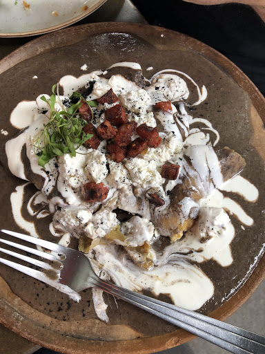 Chilaquiles verdes, you get the most basic oily chips and salsa. For the price you pay you expect a bit more effort. A fair example is Cafe Toscano, decent chilaquiles with their own style, I’ve had the vegetarians 👌🏼