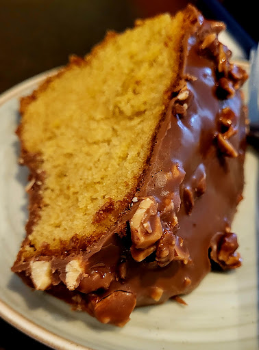 The dessert as in my picture was recommended by a member of staff. It was a pandoro cake covered in chocolate and enriched with nuts. It was perfectly edible but it was very dry and quite blunt. At least, I found it disappointing. I was not aware that I was entitled to a replacement. I don't think I saw any statement like that throughout the cafe or on the menu. Furthermore, nothing like that was mentioned by the staff. Possibly at my next visit I will try to ask for a free replacement and see what happens!