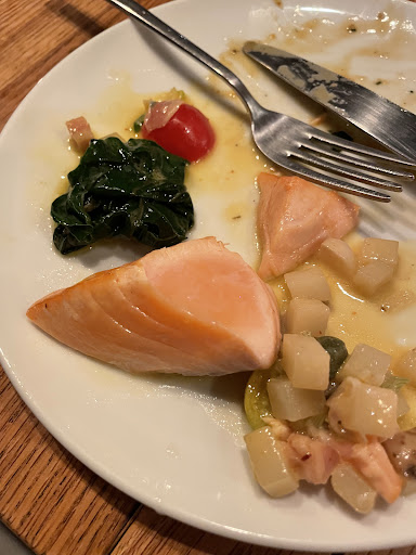 THE UGLY - then came the food. There’s no sugar coating it - the pasta was under cooked (not al dente, we love al dente). When we told the waiter, he sent the food back to the kitchen and the chef said they would cook it again. We also got pescado del dia (catch of the day), the main fish plate. It was salmon, but half of it (the taller side) was very undercooked (see picture attached).