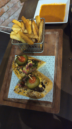 Polished restaurant preparing steaks, sushi & tacos in stylish, charming surrounds.