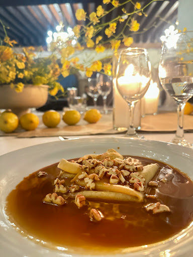 The menu was a delight, starting with a trilogy of Mexican appetizers, including a plantain empanada filled with beans, a requesón taco with cochinita pibil, and a sopecito topped with guacamole. Each bite showcased a balance of tradition and flavor. For the main course, the Tampiqueña-style grilled steak stood out—tender, flavorful, and perfectly paired with a creamy enmolada, roasted poblano strips, guacamole, and beans. The meal concluded with heavenly cajeta crepes, a dessert as rich and decadent as the history surrounding us.