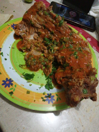 Es EL lugar de huesitos por excelencia. Tienen un costo de $65 la pieza pero parecen de Brontosaurio. Es importante llegar temprano porque se hace una fila enorme tanto de personas que piden para llevar como autos que hacen hasta doble fila sobre la avenida para estacionar. Lo único malo es que primero pasan a las personas que van a comer ahí en el local sin importar el tiempo de espera que tienen formadas las personas que piden para llevar (que es la mayoría) el local no es muy grande con un aforo aproximado de 20 personas. El proceso de logística es: pagas al fondo en la caja y das el ticket en la ventana de servicio para que te empaqueten los huesos, generalmente no dejan escoger (depende la cantidad y la gente en espera) pero sí especificar cómo van a ir armados los paquetes. No se olviden pedir la salsa que es el complemento perfecto para la carne que se despega del hueso con facilidad! Les da el toque perfecto entre lo picosito y el sabor de la combinación de chiles con los que se elabora. La recomendación es agarrar de las tortillas que bañan en la grasa del perol para armar tu taco (para llevar las ponen en el fondo del paquete a moso de base), les brinda un sabor potenciado y diferente a la carne. Hay llegar temprano porque se acaban generalmente en una hora o dos y hay que ser pacientes en la apertura ya que pueden abrir un poco más tarde de la hora. Afuera y para el antojo, hay una carpeta de postres caseros con flanes, pay de limón y cheesecake que también están baratos...