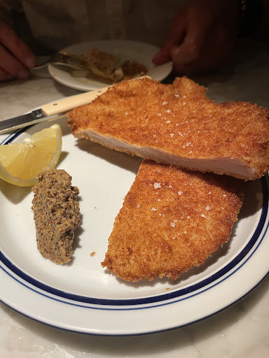 Carpaccio, olives, pan, their version of schnitzel - was good, especially the schnitzel, add a bottle of wine, the total was 3300 pesos. SO PRICEY. The food was smaller portion size except the schnitzel.