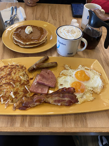 Read moreIhop es un restaurante con buenas opciones para desayunar pero OJO no son paquetes así que si el consumo lo vas sumando terminas pagando de dos personas como 500 pesos de acuerdo a los platillos que pidan. El trato es amable y aunque los fines de semana llegan a tener mucha demanda no esperas mucho tiempo para que te asignen mesa. Como todo restaurante el servicio depende de la actitud del mesero, te encontrarás con meseros apáticos y meseros muy amable. De acuerdo a la temporada sacan promociones entre semana donde puedes comer todo lo que se desees de pancakes por una cantidad bastante accesible. Si no sabes qué pedir los jugos están ricos, los pancakes acompañados de mermelada de blueberry son una maravilla, los desayunos que traen unas salchichas pequeñas no sé de qué sean pero están deliciosas y la verdad es que sus platos llena bastante desafortunadamente este restaurante tiene dos grandes defectos: 1 aunque tenga terraza y esté en una plaza con acceso a perros NO ES PERFRIENDLY y la otra que es la que más me molesta es que la CDMX está pasando por una crisis de agua y el baño de mujeres tiene una fuga en sus llaves del baño fatal y aunque lo reporte a la gerente no pareció importarle. Es una tristeza que a los establecimientos no tengan en óptimas condiciones sus instalaciones y hagan desperdicio de recursos tan valiosos como...