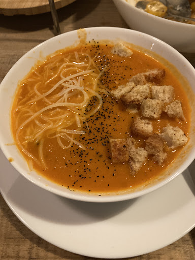 So far I’ve had a couple of the pizzas as take-out to share with friends (Sicilian was absolute perfection). Dining in, I’ve had the fettuccini with shrimp and gnocchi with Parmesan and truffle. I don’t order gnocchi often because it’s rare to find a good one. This is a GOOD one - maybe the best I’ve ever had. Most orders come with a slice of this beautifully dense and flavorful homemade bread that’s chefs kiss for sopping up every last drop of sauce.