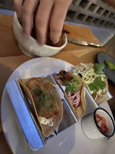 Read moreThe food was delicious, come with time because everything gets cooked at the moment and might take some time. The entry with the frijoles refritos and the salsas were nice, we ordered the trio tacos to start and omg they are very well served and tasty, the taco gobernador is very well prepared, the shrimp and the mix of the guacamole with the chorizo makes a nice combo (we ordered without cheese tho). We took the camarones and the fries to go and they did not disappointed at all! The shrimps are fresh, well cooked and huge! The fries are natural and comes with a dressing that uuuffff🔥🔥 Super...