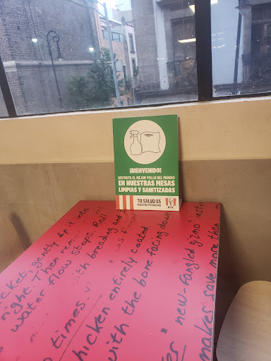 Read moreEstá experiencia me pasó el 8 de marzo de 2023. El tiempo de espera de mi pedido fue de al menos 25 minutos, pero lo que me molestó fue que una chica que al parecer conocía a los empleados, llegó después de mi y a ella le entregaron su pedido muy rápido. Después de eso, los chicos que me estaban atendiendo eran muy distraídos, y uno de ellos al momento de poner el vaso de refresco en la barra, se le cayó y se mojo toda la barra incluyendo mi ticket, pero también me salpicó la blusa y mis zapatos y no fueron quien para ofrecerme una disculpa, solo se estuvieron riendo entre ellos, y se que fue un accidente, pero no me pareció adecuada su actitud, ya para cuando me dieron mi orden, se les estaba olvidando poner mi refresco, y como lo pusieron muy rápido, ni si quiera le echaron hielos. Otra cosa que note, fue que un chico iba pasando con un plato de piezas de pollo, y le metió la mano para comerse un poco del empanizado del pollo, fue tan asqueroso, porque incluso después lo puso en la barra para que se entregará ese pedido. Esa fue la parte de atención al cliente, pero otra cosa que no me pareció fue la higiene que había en la sucursal, se veía bastante sucia y había muchas mesas sin limpiar, el piso se veía con muchas manchas, realmente me decepcionó en esta...