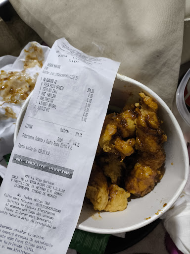 Read moreRecién fui a esta sucursal de KFC y si bien no soy cliente de todos los días, solemos consumir de esta sucursal por cuestiones de comodidad y cercanía pero definitivamente debo decir que, en esta sucursal actualmente hay un gerente que es muy joven y que casi te forza a consumir o acomodar los "bucket" como él quiere. Por otra parte también hago mención de que al llegar le he pedido cupones de descuento y me ha dicho que la empresa no da los cupones antes del consumo y pago de lo que pidas, que "la orden que tienen" es que pagues y una vez hecho esto, entonces te dan los cupones, lo cual me parece va en contra de las políticas de lo que es KFC pues en Estados Unidos, para nada funciona así y si es así como lo llevan a cabo en México, entonces deberé poner una queja en la PROFECO, pues están condicionado su forma de consumo y en no lo están informando al público consumidor y están engañando a la gente al promocionar también en sus anuncios, el uso de cupones de descuento....