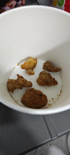 Read moreRealice un pedido por uber eats el cual llego pesimo, pedi un paquete en el que faltaron 4 quetiras, los bisquets, llego un macarron con queso en lugar de un pure y de las piezas de pollo llegaron la mayoria cruji y una receta secreta aunque eran la mitad bbq, lo que me hizo pensar que mandaron lo que les sobro, tuve que ir a reclamar porque me falto practicamente la mitad del pedido, a lo que la "gerente" sw excuso diciendo que ella dejaba de revisar pedidos a las 9 y que por eso no lo habian revisado,que la aplicacion tenia mal los horarios, que ya no tenian nada y que no podian hacer nada, la actitud fue nefasta, no nos quiso dar su nombre y me dijo que si queria regresara mañana por el pedido. Entiendo que son dificiles los cierres y que ya solo querian irse a casa, pero en ese caso seria mejor que no aceptaran los pedidos y listo, jamas volvere...