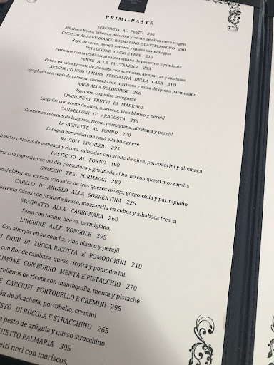 Read moreI went for dinner at Lucrezio’s the food, the service and the atmosphere all first class and the check for two people was fair, where I felt insulted was when I was charged $70 pesos for valet parking, why? My car did not eat, I spent a healthy amount on food, I had the money but why should I pay a premium amount just for parking on the premises? I did not leave a tip to the valet, the restaurant can do it for me, it was...