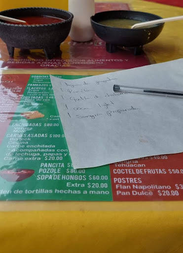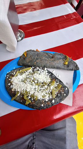 Read moreAntojitos, quesadillas, tlacoyos, sopes, gorditas, sopa de médula, etc. Perfecto para comer en El mercado, los platillos son de masa azul y son sencillos pero ricos. En general lo que pidas está entre 30-40$, por lo que, más tu bebida (30$ promedio) te gastas poco más de 100$.