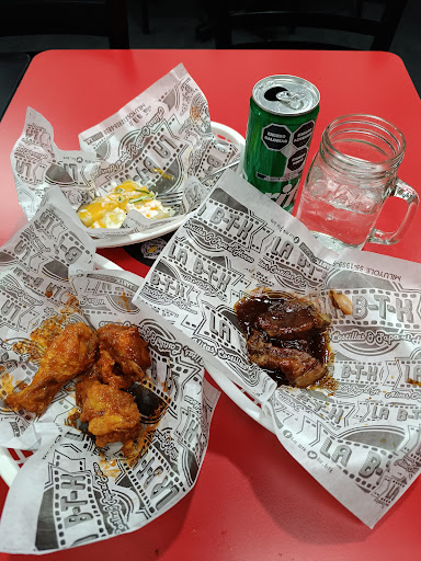 Read moreBuena experiencia. Había ido cuando recién abrieron. Cerca de enero 2019 y no me había gustado como me atendieron. Era muy malo el servicio. Pero felicidades, mejoraron muchísimo, ya casi son tan buenos como la sucursal de Polanco que me encanta. Me falló hoy un poco el servicio. Pero los platillos fueron de-li-cio-sos. En serio, no me puedo quejar, estaban frescos, recién hechos, y bien preparados. El cometodo es el favorito de muchos. Consiste en pagar $228.00 (al dia 5 de mayo 2022) y pedir los que quieras entre boneles, alitas, costilla y papá al horno. Picosas las Atomic, mango habanero, fresa, original. Las menos picosas son ajo con parmesano, tamarindo, BBQ, limón Hawaii. Las costillas te las dan pequeñas al principio y después te las traen grandes, ¡ojo! Una de las condiciones para que aplique el cometodo es que pagues tu bebida, y mientras tengas bebida te traen lo que quieras. Si te acabas la bebida tienes que pedir otra o ya no aplica el cometodo y te cobran a la carta lo que comiste. Entonces al final comienzan a traerte más grande y cosas que no pediste para que no puedas terminartelo y así pagar a la carta. Si, así de colmilludos. Entonces te recomiendo: Siempre mantén tu vaso lleno o sin terminar, pide y disfruta los que quieras. No compartas con tus acompañantes ( es parte de la dinámica). Y al final se firme. Si no lo pediste no lo recibas. Simplemente se firme "yo no lo pedí" y punto.