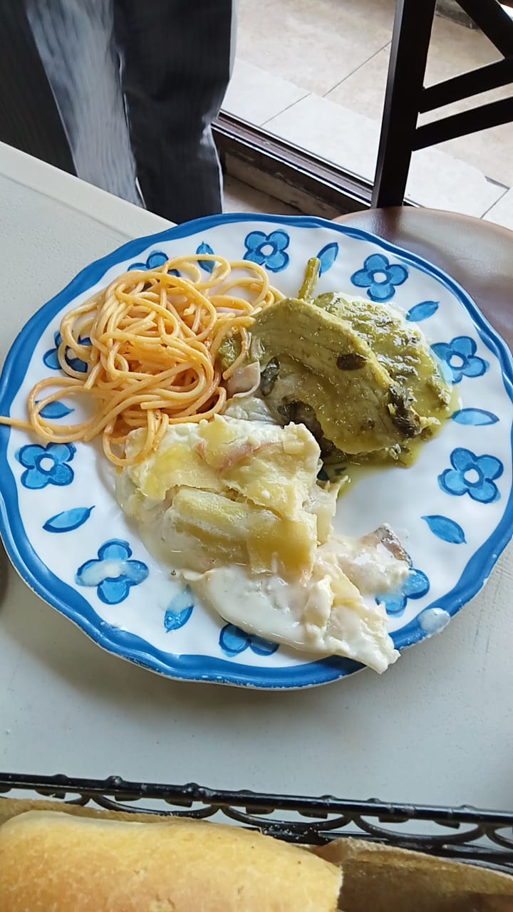 Read moreLa comida está como dicen X no tienen sazón te llevan los cubiertos así con los guantes sabiendo que en los guantes hay muchas bacterias y virus no te los dan envueltos como en otros restaurantes, te atienden con mal carácter invite a mi hija porque me lo habían recomendado que estaba muy buena la comida y oh decepción así que no lo recomiendo está mejor la comida en el toks o en sanborns yo sé que esos lugares son caros pero vale la pena por como te atienden y sobre todo la comida que es muy rica, señores de la bufetera pónganse las pilas no hay buen manejo en los utensilios no hay sanitizacion espero que tomen en cuenta que en estos momentos estamos con una pandemia y debe de haber mucho cuidado con las cucharas cuchillos...