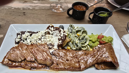 Read moreLunch in CDMX is always exciting with many options for theme and fare. La Calaca is a "Dia de Muerte" (apologies in advance for any inaccuracies - I'm not local) themed restaurant that actually has 2 live trees growing inside and through the roof. It's kind of like the "Jungle Forest" meets "Tim Burton" inside, but all crafted to a very high level. Disney could take lessons from this place. We ordered some beef tacos, "steak tartare - like" dish and a huge, hot stone cauldron, bubbling with a mixed meat, seafood and cactus leaf grill. Lunch was served with fresh corn tortillas and green and red chili sauces (!). Everything was flavorful, fresh and delicious 😋. Great neighborhood and good food served in a uniquely CDMX...