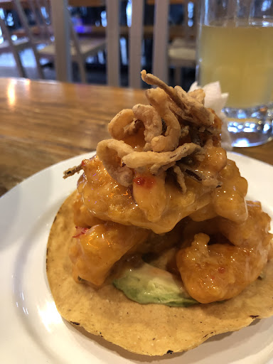The shrimp taco (what was it called?) held three batter fried shrimp overdressed in a thick sweet sauce and guacamole. I had to scrape off the excess sauce as it was quiet overpowering.