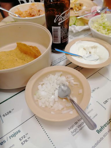 Read moreLos alimentos muy bien preparados, la atención es inmediata pero los meseros parecen merolicos, se ve que los capacitan para atender mecánicamente. Lo caro en este lugar, son por supuesto las bebidas, los "extras" como pedir un poco de crema adicional para las tostadas o las tostadas en si. Pedir que le cambien un aguacate duro es adicional también (no hacen cambio, así que así le toca a uno un aguacate verde, hay que aguantarse) Los baños nunca me han tocado sucios, aunque el único inconveniente es la altura de los minjitorios que están demasiado altos y se complica un poquito los riesgos de higiene. Pongo 3 estrellas porque ya están demasiado institucionalizados tipo MC Donalds, se perdió la calidez humana que tanto nos gusta en México Actualización: LOS MESEROS YA NO ESTÁN DE ENCIMOSOS, pusieron un aparatito para llamarlos (aún así dan 5 vueltas a la mesa cuando...