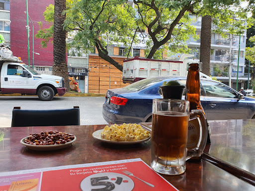 Supongo que aquí, cómo en otros lugares a causa de la pandemia, la Covachita de la Reforma pudo extendese hasta la calle. Quedan así unas mesas en una terracita con vista al arroyo directamente. La estructura de maderas para hacer está ampliación crea un efecto y un ambiente muy agradable. Ayer lo disfrutamos, aunque la noche tendría que hacer estado un poco más tibia para hacerlo realmente cómodo. Aquí sirven tacos y han invertido más en la presentación. Encuentras desde los al pastor para adelante. El sabor es más bien promedio. Al incluir el precio, hace el costo beneficio más bien poco atractivo. Si lo que quieres es sabor por tu dinero, busca otro lugar. Eso sí. Puedes encontrar algunas novedades. Cómo sus doraditos. Tacos dorados de frijoles y carnitas. Suenan más interesante de lo que resultaron, en mi opinión. Habría deseado un poco más de sabor a frijoles o a carnitas. Pero quizás esa era la intención del chef. En todo caso es algo a lo que uno podría acostumbrarse: una especie de pasta que suponemos es de frijol y carnitas. También tienen agua de cebada. Algo tradicional de las regiones de allá por Sinaloa. Es la primera vez que la encuentro servía en la ciudad de México y en efecto sabrosa y refrescante como en su tierra de origen. El servicio muy amable. Quizás podría desearse un poco más de velocidad. Pero eso es algo que en sábado en la noche y en pandemia se tolera. Por cierto. Esta a una cuadra de reforma, a espaldas de la bolsa de valores. Seguramente de ahí el nombre. Quizás eso es lo que les permite elevar un poco los precios. La clientela financiera hambrienta y con...