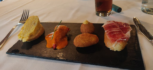 El postre que más me encanto fue la tarta Donostierra junto con unas trufas de almendra y rocas de chocolate blanco muy ricas en sabor. El mesero que nos atendió muy atento en la orden y eficiente con las bebidas al igual que con los platillos que nos sugirió, la Gilda fue una entrada increíble junto con las croquetas de jamón que son riquísimas.