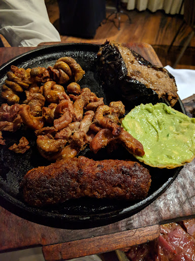 The menu is concentrated around beef cuts and other typical Mexican grill specialties. I highly recommend the meat empanada with its Chimichurri sauce as a starter, followed by either a beef cut served on its flamming hot plate or the salmon. The sauces prepared with the meat or fish are simply delicious. For the dessert we tried the flammed strawberries and the cream strawberries, both simple yet tasty, with the former being directly prepared in front of the table.