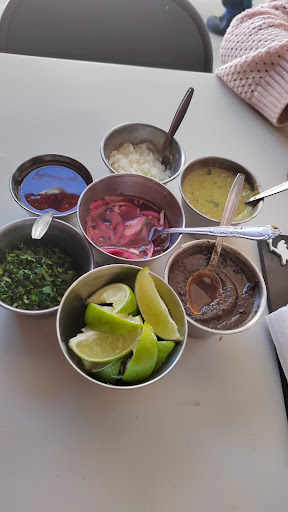 Te dan la “carta” que es una hoja donde tú marcas lo que vas a pedir. De las cosas que tienen en el menú (birria, el cerdo y la cochinita), solo la birria estaba buena pero en tortilla de harina porque en maíz estaba dura (no son hechas al momento y a pesar de que sean del día de ayer, están mucho tiempo en el comal y eso hace que se pongan duras). En cuanto a las bebidas, había agua de horchata, michelada y Boing. El agua de horchata le faltaba canela.