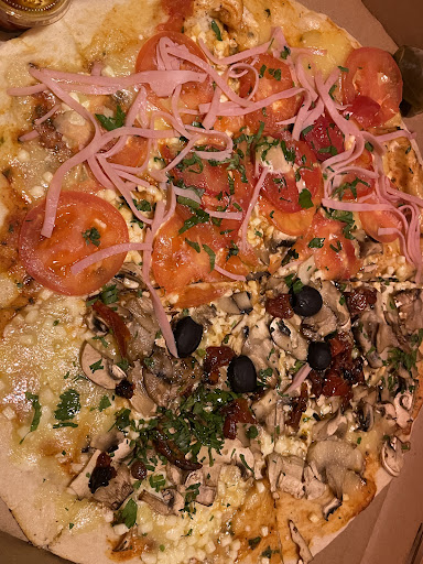 The food was delicious, we just ordered a large pepperoni for 180 and 40+ for each additional topping.