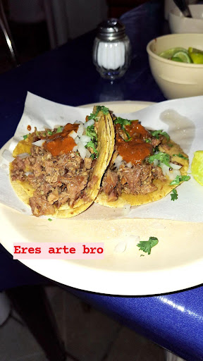 Read moreComo primer acercamiento probé un taco de bistec y uno de pastor. El de bistec, jugoso, con mucho sabor. Servido generosamente en una cama de dos tortillas de maíz y cubierto con una tercera; pa' que no se enfríe. Solo hace falta un chorrito de limón y el sabor explota en la boca. Agrégale pico de gallo y salsa verde recién preparada a discreción... Pa' qué te cuento. Vas a querer volver por más.