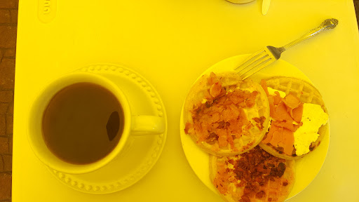 Read moreI'm not a sweet tooth so this review may not apply to those looking for sweet waffles. I had savory waffles and those I cannot recommend. On the bright side, prices are fine and attention is good; however, waffles are small, dry and cannot be cut evenly, toppings are nice but limited, and the "specialty" coffee is just disappointing. I'm not sure if sweet toppings cover the tastelessness of the waffles' dough, which is clear, but for savory ones it comes as is...
