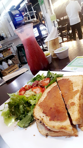 Vi por televisión reportaje en donde salió el restaurante y no dude en ir, al leer los comentarios había muchos que indicaban que era demasiado lento, sin embargo en la hr que acudí 12am despues de salir de un concierto me atreví a visitarlos en vez de ir a los típicos taquitos, había poca gente y la atención fué rápida y eficiente, estoy hablando de un viernes a la media noche y en quincena. Ubicación excelente, comida muy buena , te ofrece una carta muy amplia y novedosa, precio bueno(leí que era elevado y siento q es bueno pues manejan frutas muy buenas y todo es natural) ya nada es barato. Probé sandwich de jamón serrano con mermelada de higos al chipotle, está muy rico y acompañado de una ensalada de lechugas con cherrys y fresas y un jugo de moras... me gustó más el de fresa de mi esposo el pidió sandwich de salmón muy rico también. Pongo 3 estrellas por que no me gustó que es pequeño y apesar que tiene mesas afuera admiten perros y en el momento de mi visita habia varios y se puso tenso que uno de los perro al pasar por una mesa subio sus patas en un comensal era perro gde dalmata y todo el tiempo estuvo inquieto ladraba se jaloneaba de su correa y su dueña no lo podía controlar eso me hizo sentir vulnerable y pensar que en cualquier momento se soltaría y se pelearía con un husky que estaba cerca u otro perro q tambien andaba ahí. Pienso que por higiene y espacio no deberían aceptar mascotas. Respeto que todo ahora es la moda ser pet frendly pero al menos a mi me gusta estar tranquila y disfrutar de mis alimentos y estar en ese momento me tenso mucho y no disfruté tanto. Volveré a ir espero sea mejor...