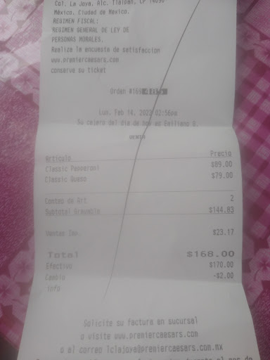 Mucho cuidado !!! Te cobran con tarjeta y el chico que está en mostrador te dice que no paso el pago y hasta te esconde el baucher del cobro pagué una pizza con queso en la orilla y la gran cereza del "pastel" fue que en una rebanada de pizza traia un cabello 🤮 y le dijimos al de mostrador como venía la pizza y su solución fue cambiar por otra y la verdad pedimos hablar con el gerente y la seudo gerente no queroa hacernos la devolicion a fuerzas quería cambiarnls por otra pizza o un cupón, al final argumento que no quería pprque tenían que hacer mucho papeleo pero le comentamos que no se preocupe que teníamos todo el tiempo para esperarla así que no les quedó de otra que hacernos la devolución del dinero pero aún asi se quedaron con el pago que nos robaron al pagat la pizza . Si pueden eviten pasar ahí porque no tienen higiene, ni...