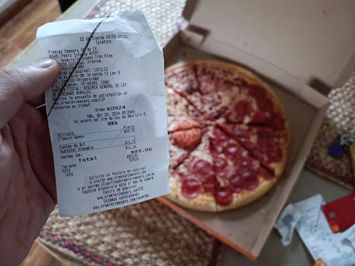 Read moreUna pizzeria buena, bonita y barata. Pedí una pizza grande de pepperoni por $79 y nos encantó a mi novia y a mi (y eso que mi novia no es fan de la pizza). La masa estaba bien cocida y no era ni muy delgadita ni muy gorda, tal ves podrían mejorar su sabor haciéndola un poco más crujiente, el pepperoni si que estaba más crujiente y eso nos gustó bastante. Algunas personas podrían decir que la pizza está algo grasosa pero curiosamente es lo que le daba buen sabor y hay que decir que esa sensación la llegas a percibir más que nada por la "salsa" que toda pizza lleva y es lo que le da su sabor característico, en este caso esa salsa era abundante en el centro y cuando la mordías podrías creer que está grasosa cuando no es así.