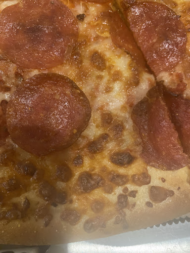 The pizza here is great, the fastest pizza to order is the normal one with pepperoni, there's also bread sticks, chicken wings with buffalo sauce, and of course different kind of pizza which are Hawaiian, only cheese, a special meats, one that has four different pizzas and the "Deep Deep Dish" that is a pepperoni pizza Chicago style. It has parking space, and the wait is almost nonexistent. You can pay by cash or through credit card. The soda brand is Pepsi. They have an area to eat with one bathroom. The price ranges between $100...