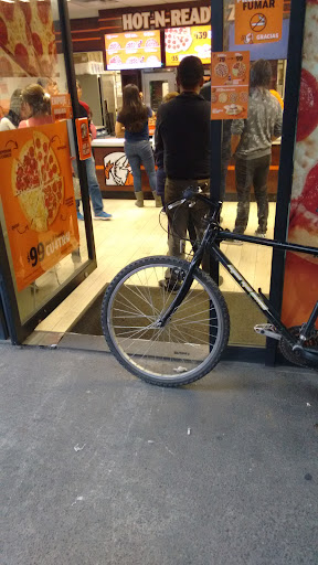Read moreHemos acudido constantemente en los últimos días y nunca dejan comer los alimentos dentro de sus instalaciones, a pesar de contar con el espacio disponible. Además, en una ocasión quisimos hacer uso del sanitario, como en otras sucursales de Little Caesars, y nos comentaron que estaba ocupado; entonces decidimos esperar. Pasó una hora de espera mientras comíamos porque no teníamos otra opción de sanitario disponible. Y resulta que jamás se desocupó el baño. Entonces lo dejamos pasar, pero hemos acudido otros días en los que tampoco se encontraba disponible el sanitario. Comento esto porque en otras sucursales siempre nos brindan ese servicio. Además, una empleada que entrega las pizzas es muy grosera y nunca nos quiere dar sobres adicionales de chile seco. Pasando de tema, la única opción de lugar para consumir alimentos cerca son las mesas y bancos que se encuentran fuera del establecimiento.
