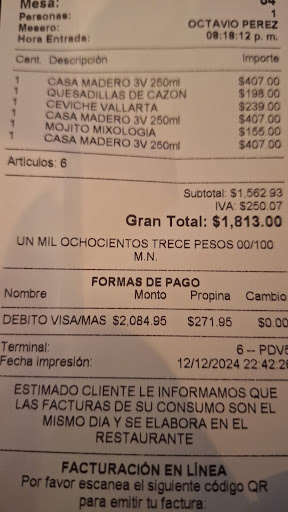Finalmente, lo que si no tiene perdón, es la comida, carne pasada de cocción, exceso de aceite, salsas/aderezos sin sabor. No es la peor comida que he probado, es pasable, pero por el precio esperaba algo mucho mejor. Mi mayor problema fue su "Filete CHEMITA", de calidad prime no tenía nada, estaba seco, sobrecocido, hasta cortarlo costaba trabajo, no es algo que volvería a pedir.