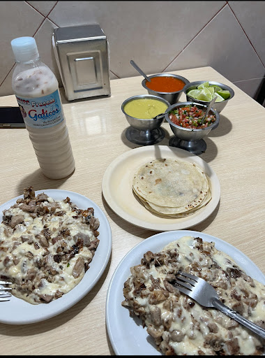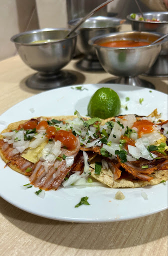Read moreen mi caso solicite tacos de pastor y un alambre pero tienen mas opciones volcanes, gringas etc... en general tienen moderada cantidad de carne bien cocida no quemada buen sabor, tienen 3 variedades de salsa, en mi caso solicite media jarra de agua de horchata estaba buena pero muy espesa y dulce, el mesero que me atendió muy amable y entrego el servicio rápido, los baños están limpios solo que están en un segundo piso por lo que las personas con discapacidad no podrían ingresar, si llegas a ir sientate en cualquier lugar menos a la entrada por que se siente el calor de los trompos que calientan la carne, tienen sillas para niños y tienen estacionamiento con valet(no confio en valet parking) pero se encuentra en una calle tranquila en la que te puedes estacionar a los alrrededores si es que como a mi no te gusta el valet parking y finalmente los costos taco de pastor $10c/u alambre super chavo (para dos personas, salen como de 8-10 tacos) $90 y media jarra de agua...