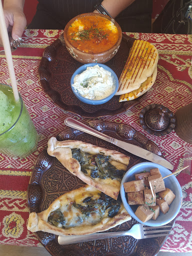 Read moreNo recomiendo esforzarse por ir. La atención fue lenta, el mantel de la mesa estaba sucio, y no solo de las migajas típicas, sino de suciedad de que se derramaba alguna bebida y no se limpia en todo el día. Las bebidas que probé (café sultán, latte de moras y turco clásico con cardamomo y cúrcuma) no estuvieron mal, estaban especiadas correctamente, sin embargo tampoco tiene nada que no se pueda encontrar en muchos otros lugares con mejor atención y sin el sobreprecio que se paga aquí, en el caso de los alimentos, misma cuestión, carta muy limitada y sin mucho chiste. La oferta de postres muy pobre, cuando fui, no había baklavas chicos, solo había baklava “grande” (que en realidad estaba chico y en 110), y que te dan en platito de unicel, estaba rico, pero nuevamente, hay baklavas que valen más la pena en otros lados, y el brownie me supo más a pingüino marinela que a otra cosa. En fin, un lugar esnob “instagrameable” más, que engancha con el tema turco, pero que no se siente un lugar autentico, y al valorar la atención, la calidad de los alimentos y la “experiencia” de vivir algo diferente, en definitiva no vale la pena ir, solo se paga un sobreprecio disfrazado de...