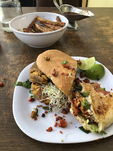 I kept stealing, this time a bite from a friend's Norteña sandwich. In terms of taste, I'd rate it over the burrito, but I wanted more nutrition from the legumes (tofu, humus and beans) so I stand by my original choice. 🤭