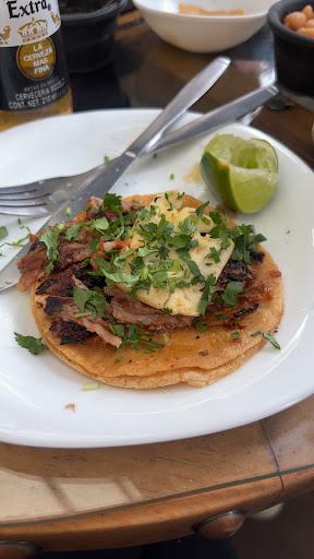Maestro Taquero se ganó mi respeto y mis aplausos! 👏🌮 Desde que llegamos, el servicio me sorprendió con un detalle que no pasa desapercibido: una cervecita para empezar. Eso habla de rapidez y de querer que el cliente se sienta a gusto desde el primer momento 🍺✨.