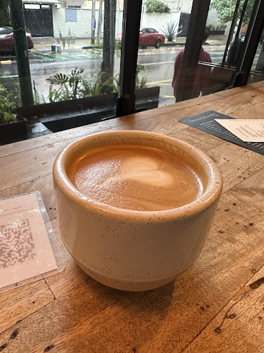 this is my favorite café, because it has a lot of good points, first of all, the attention, when you arrive, they take your order with a smile and caring of you, second, the taste of the food and drinks, they have a variety of them, and recently they improved with breakfasts, but those ones leave nothing to be desired, something to be clear is that for two people you may waste $300/$400 mexican pesos, including breakfast and a drink, one of the thinks they may improve is that the place is small, not a lot but a little bit, there are not a lot of benches, but there are in a good zone, in conclusion. This is a beautiful place in a good zone with good taste and a little high prices to pass time with your friends, boyfriend or girlfriend and also with family, definitely I’ll...