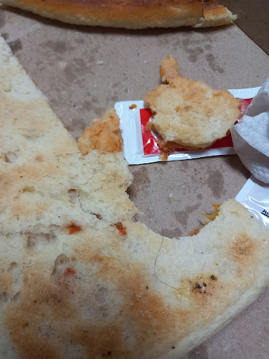Es una buena pizza para el precio que tiene, por una pizza familiar más que suficiente para dos personas, y dos vasos de agua de horchata pague apenas arriba de 120 pesos que está muy razonable, cabe mencionar que comparado con la competencia de a lado que vende pizza de peperoni por 79 pesos ( que viene como con 20 peperonis por pizza, aca si acaso tiene 6) , tiene muchos menos ingredientes y poca salsa, lo que no me gusto nada fue la catsup que meten es muy muy mala, de esa que parece rebajada con agua y que se maneja en puestos callejeros de pizza, la verdad si le subieran 10 15 o hasta 20 pesitos a sus pizzas, pero le metieran un poco más de ingredientes, y lo de la catsup las mejorarán de sobremanera, la salsita especial, no recuerdo que es, pero parece como de árbol está buenísima, y el agua de horchata bastante decente.
