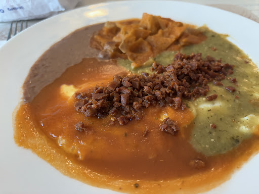 Read moreYa había venido anteriormente a probar solo el pan, la concha de vainilla y el pan de elote una chulada, pero la de chocolate es la ganadora por la calidad del producto. Sin embargo hoy vine a desayunar y la experiencia no fue igual. Pedí un capuchino frío, el café me pareció muy mediocre, y estaba entre caliente y frío. Y de ahí en la seccion de huevos había una opción con chorizo, frijoles y chilaquiles. Pero se tomaron muy en serio que era acompañante, ya que me sirvieron yo creo que 10 gramos de totopos, la cantidad de chorizo más decente, pero este no estaba rico, y los huevos prácticamente sin sabor, la yema pudo estar mucho más tierna, y también la cantidad de frijoles muy triste. Las salsas no eran malas. Probé los chilaquiles de un amigo, y la ración mayor y el totopo de mucho mejor tamaño, pero aún así no son muy buenos los chilaquiles. Y también probé los huevos rancheros de otro amigo y más decentes, pero hasta ahí, ninguna maravilla. En conclusión el pan es excelente, los desayunos muy chafas. Regreso feliz otro día a probar más decentes su...