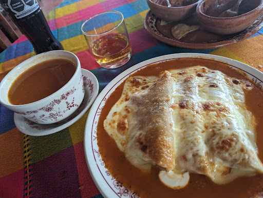 Read moreAfuera en la terraza, es fresco pero hay murmullos de la gente que pasa, asi que decidimos entrar al lugar, es muy agradable, se nota que es de comida tipica. Pedi arrachera y las porciones son adecuadas, buen sabor, a mi gusto suave pero cocida a 3/4 La enchilada de mole rica, buen sabor y no muy picante El guacamole, cremoso, de color brillante, se antoja tomarlo directo con un totopo Los frijoles bien sasonados con sabor de pueblo La cerveza, mmmmm, muy grande el vaso y le pusieron hielo El mezcal artesanal de primera y a buen precio, solo he probado mejor en tlaxcala El agua de jamaica bien, con sabor Probe del plato de una de mis hijas la sopa de tortilla, muy buena, bien preparada, con crema acida y chile tatemado,...